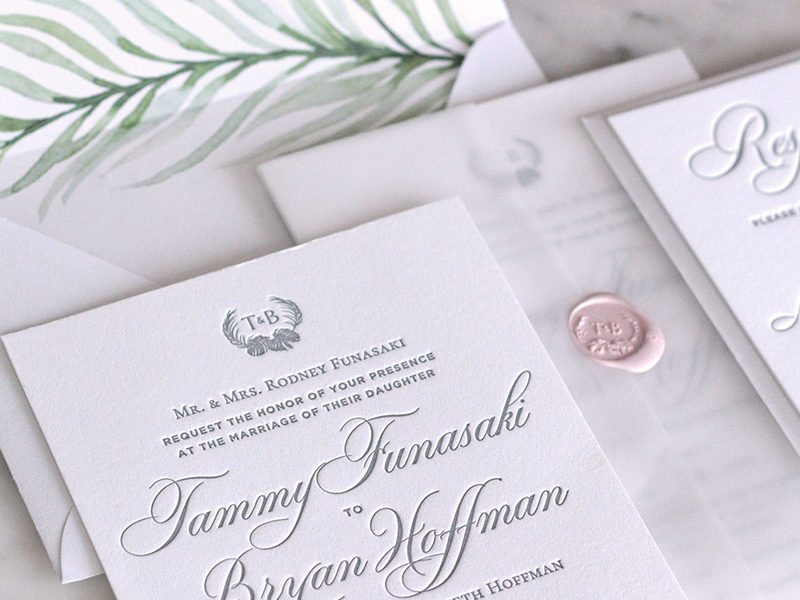 Hawaii Wedding Custom Letterpress Invitation Set The bride-to-be and her fiancé had a bunch of scatt Read More →