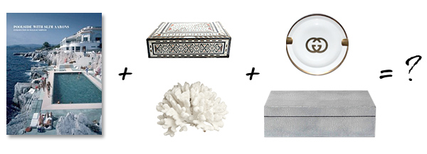 As I tackle the accessorizing of our coffee table, I’m keeping these types of images in the back of my mind. I’ve got my Slim Aaron’s book, a Moroccan box, a silver snakeskin box, a piece of white coral, and a gold-rimmed vintage Gucci ashtray to start. Do you do this too, as in, try to keep a visual standard in mind, i.e. “What would [insert directional figure here] do?” Currently, I’ve got “Pierre Cardin circa 1970 in St. Tropez” on the brain…